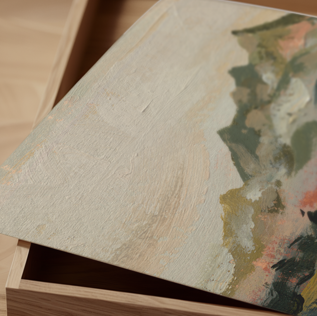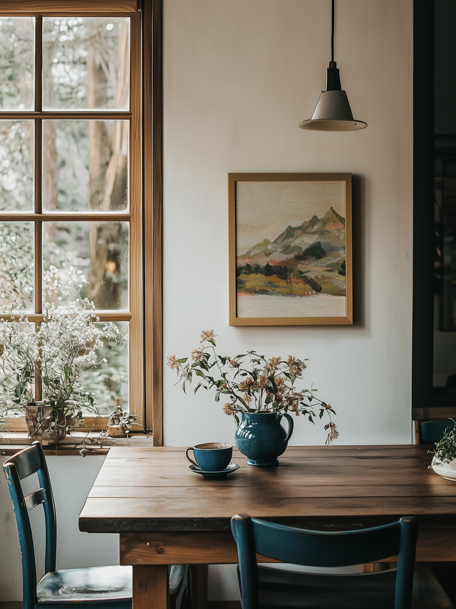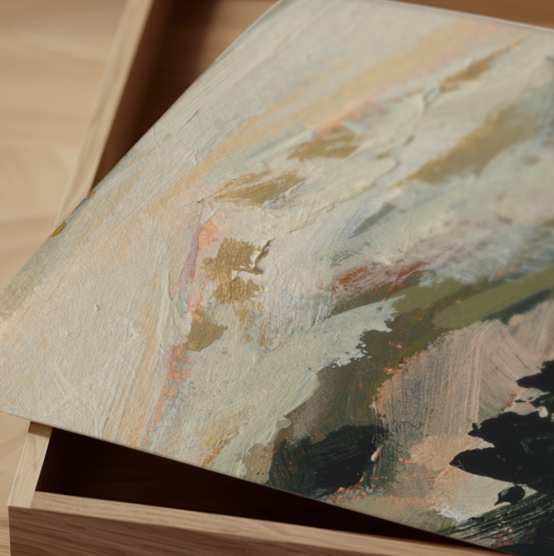 Inspired by the volcanic peaks and alpine lakes of the Cascade Lakes Highway in Central Oregon, where snow lingers in the shadows and still water reflects the sky. Bold brush strokes and cozy colors define this collection. Frames shown are for inspiration only.